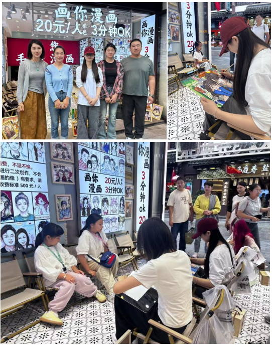 在实习现场,两名学生正熟练地为游客绘制肖像画,笔尖流转间,游客的神态与景区的热闹氛围被精准定格。据单位负责人介绍,两名学生凭借扎实的绘画功底和耐心的服务态度,已成为店内接待游客的“主力”,为即将迎来的国庆、中秋假期猛增的景区游客提供更好的服务。