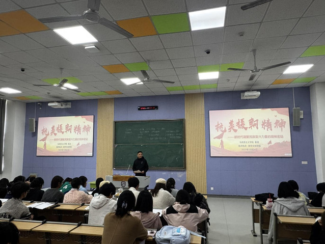 在中国人民志愿军入朝首战告捷纪念日前夕,10月24日数字文创学院以“抗美援朝精神——新时代凝聚民族复兴力量的精神密码”为主题,开展本年度第五次党课学习。此次党课特别邀请了学校马克思主义学院董波老师担任主讲,和同学们共同回顾那段波澜壮阔的历史,感悟抗美援朝精神的丰富内涵与时代价值。