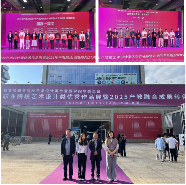 为深入贯彻教育强国建设规划纲要,不断推动专业人才培养与产业发展需求衔接,推广专业教学成果,数字文创学院戴伟、王硕、朱静璇、王钰于11月13日-16日赴广州参加教育部职业院校艺术设计类优秀作品展暨2025年产教融合成果转化对接会。
